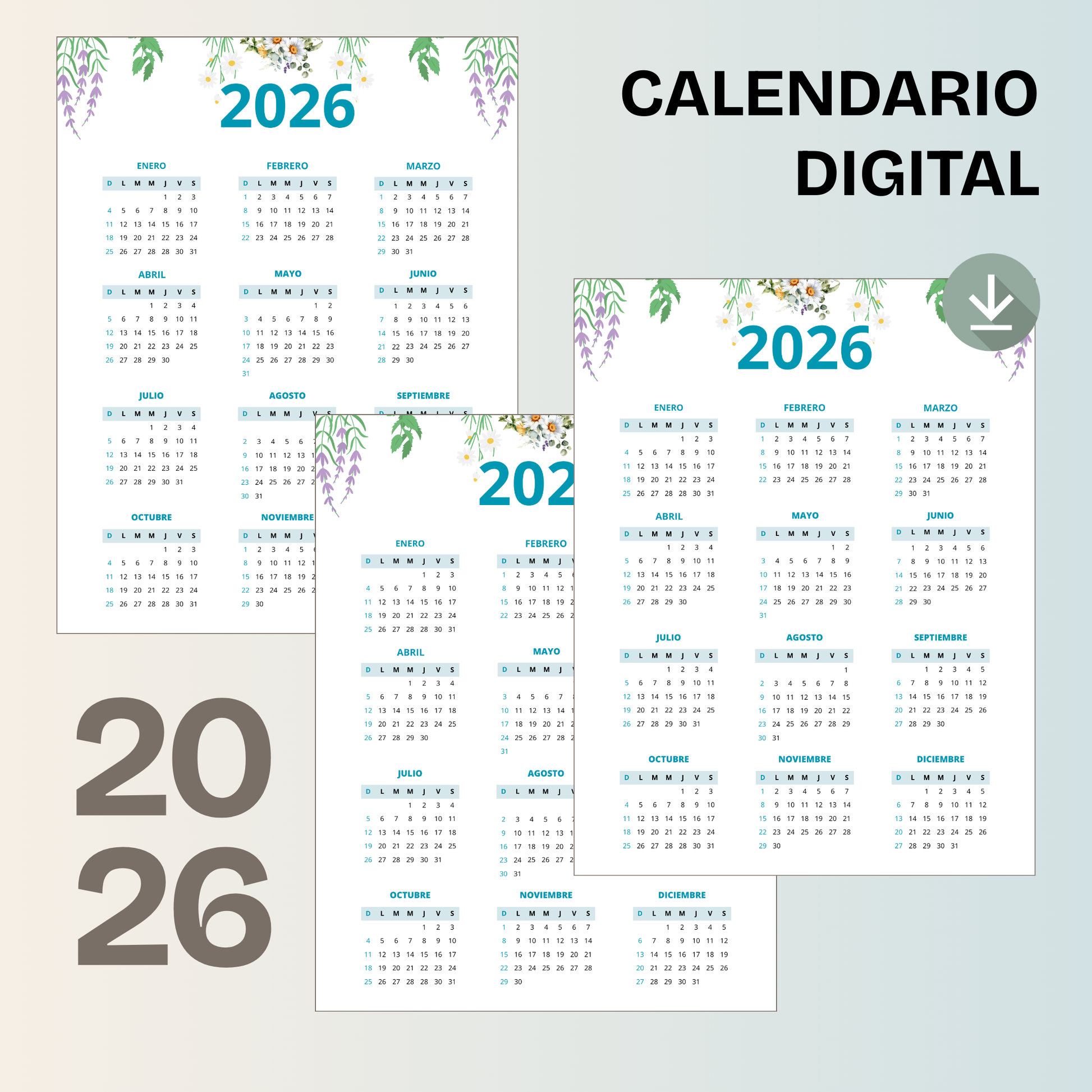 Calendario anual 2026 con un diseño floral suave y moderno. Perfecto para imprimir en casa o usar de forma digital, y mantener tu año organizado con un toque delicado y estético.